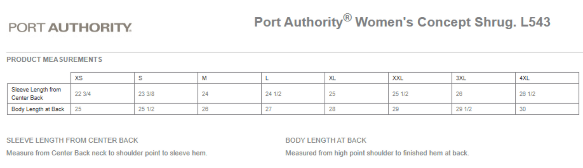 Top off your look in style with this shrug that's equally flattering paired with a skirt or jeans. Your custom logo is embroidered on the left chest.